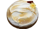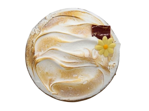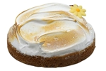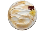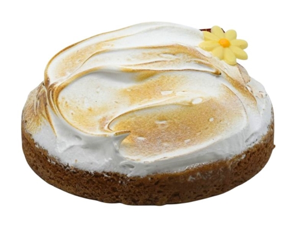 Koekbodem met citroenbavaroise en een eiwit suiker schuim.