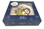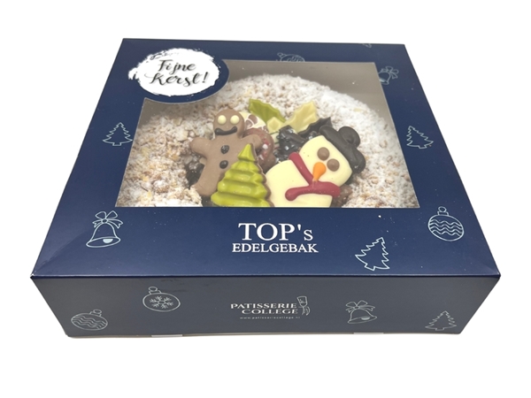 Pakket betaat uit een amandelkerst krans van 500 gram en een box kerstchocolade. In een kransdoos geleverd.