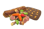Pakket wordt verpakt in een rood cadeautasje en gevuld met een pakket staaf, speculaas brok en een box winterkost.